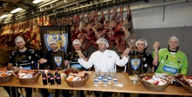Glæsilegur hópur vaskra manna kom í heimsókn til Norðlenska á föstudaginn. Þar voru á ferðinni leikmenn, nýráðnir þjálfarar og forráðamenn Akureyrar - handboltafélags og var tilefnið það að skrifa undir samninga við Heimi Örn Árnason og Bjarni Fritzson, sem taka við þjálfun liðsins af Atla Hilmarssyni að þessari leiktíð lokinni, við Sævar Árnason sem verður áfram aðstoðarþjálfari, og við leikmennina Sveinbjörn Pétursson og Hörð Fannar Sigþórsson.