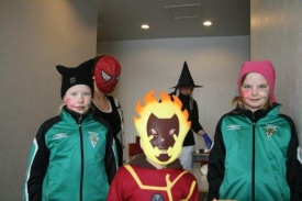 Glatt var á hjalla hjá Norðlenska á Akureyri í morgun þegar öskudagsliðin streymdu inn, sungu fyrir starfsmenn og þáðu hressingu að launum, Goðapylsu með tilheyrandi meðlæti og drykk.
